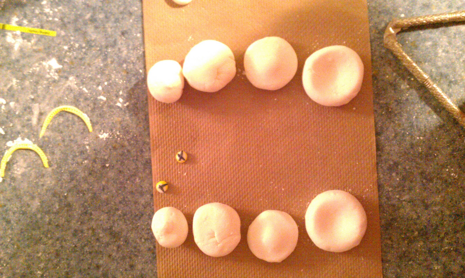 I made the fondant while the cakes were cooking.  By the time the cakes cooled I had most of the small pieces sculpted.  I started with the small parts so they would have time to harden.  This makes them easier to adhere to whatever I'm adhering them to.