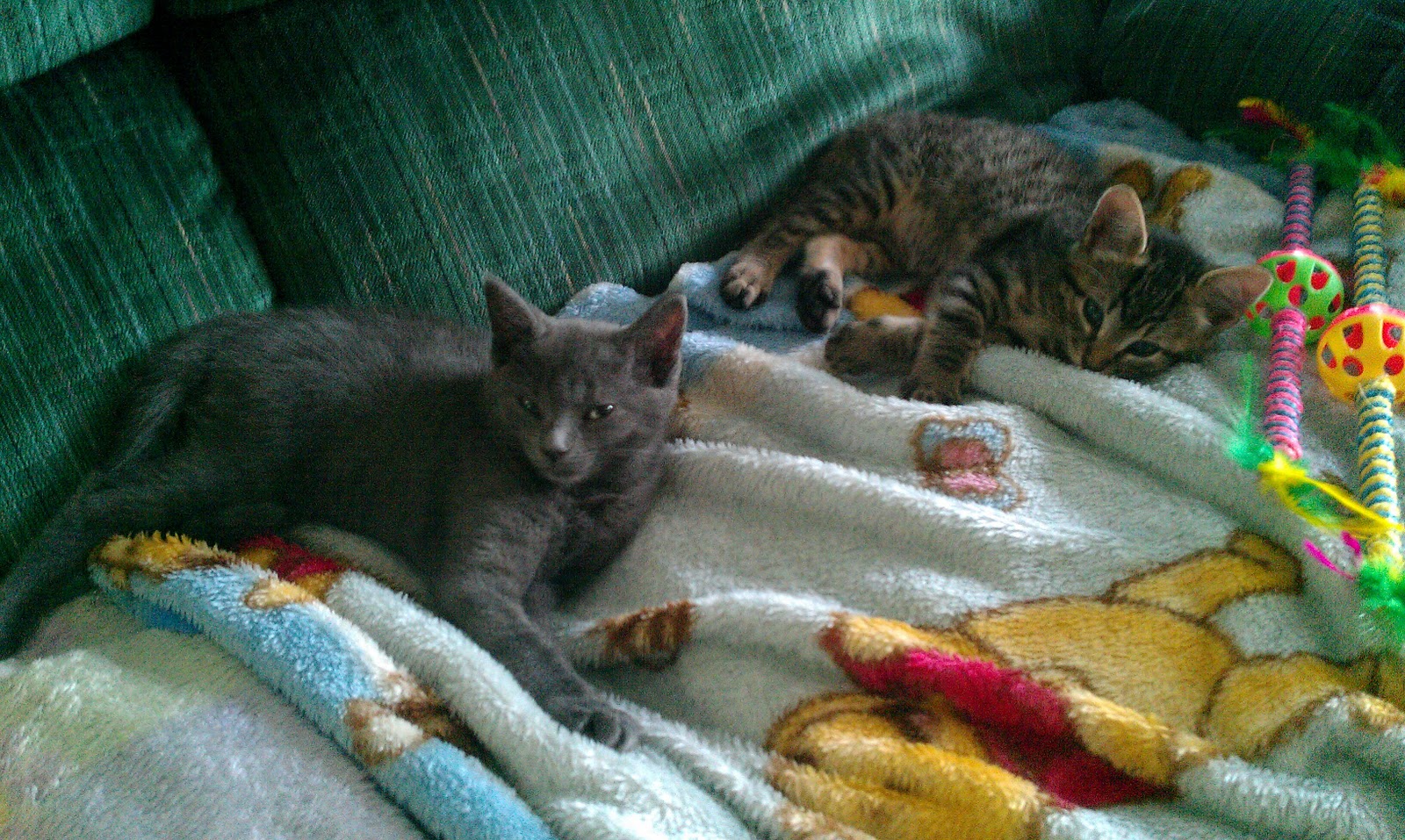 We have have picked up two new kittens recently and they get along fine with our dog, Patch. But our veteran cat of 8+ years is less than thrilled. We decided to let my son name the gray one and let my daughter name the tiger one. They chose the names "Gray" & "Tiger." It looks like I'm going to have to enroll them in some sort of activity that promotes creative thinking.