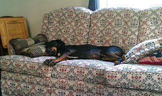 Here's poor Patch passed out after entertaining the kittens all day...
