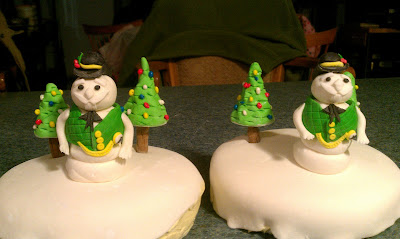This year's Christmas cake challenge was Sam the Snowman (the claymation narrator from the old Rudolph special.) The goal was to create two identical cakes within a couple hours so my son and daughter could each take one to school.
